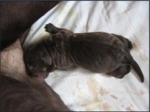 hatte das Ganze für ihn zu lange gedauert und er kam tot zur Welt. Alle Welpen wogen zwischen 400 und 475 g,