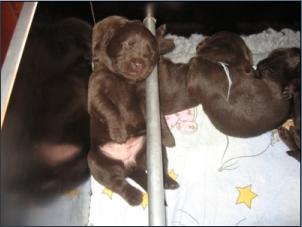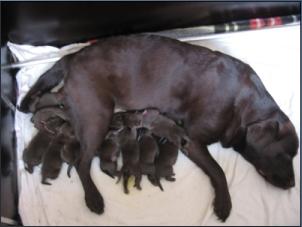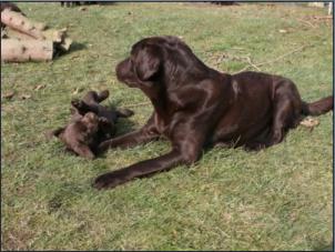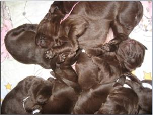 die kleine Öhrchen hängen heute fast alle und die Welpen ähneln nun schon einem Labrador.