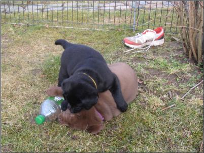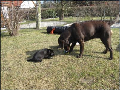 Die Sonne schien das Wochenende und wir nutzten den Außenauslauf stundenweise. Das hat unseren Kleinen sehr gefallen. Sie sind durch das Gras geflitzt und haben Zaun und Sträucher abgeschnuppert. Dann kam auch noch Herrenbesuch und die geduldigen Rüden ertrugen die kleinen Racker bewundernswert.